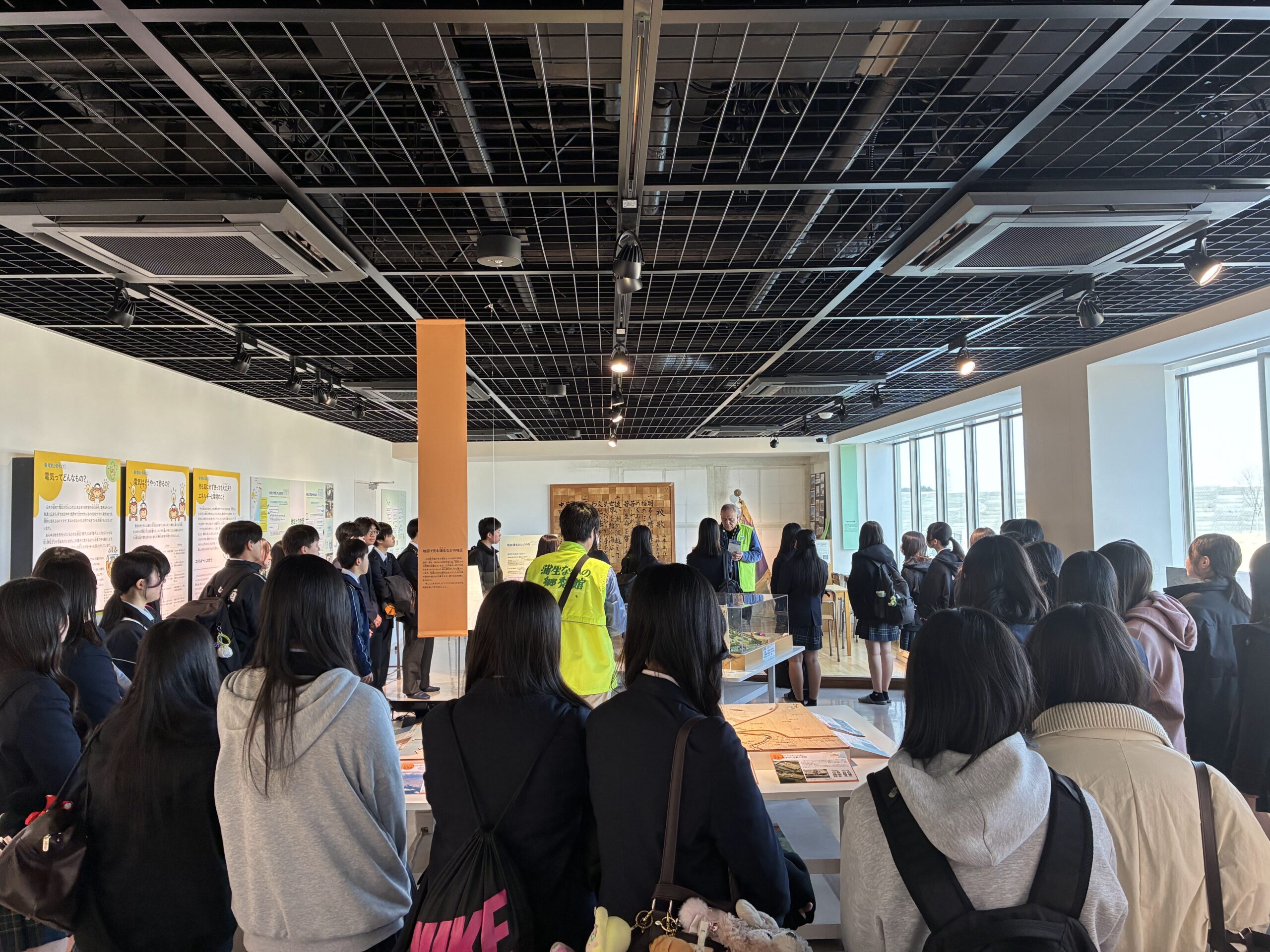 また、発電所に併設する震災伝承施設「蒲生なかの郷愁館」では、江戸時代からの歴史を持つ貞山運河や地域の歩みについても学習いただき、震災前の暮らしや旧中野小学校の資料を真剣に見学される姿がとても印象的でした。